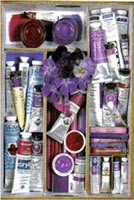 En el mercado existen numerosos tonos preparados. De izquierda ha derecha, (de superior a inferior), violeta brillante, violeta claro, violeta de quinacridona, violeta oscuro, violeta ultramar, violeta azul claro, violeta medio violeta de dioxacina, violeta azulado, caput mortuum, violeta oscuro permanente.